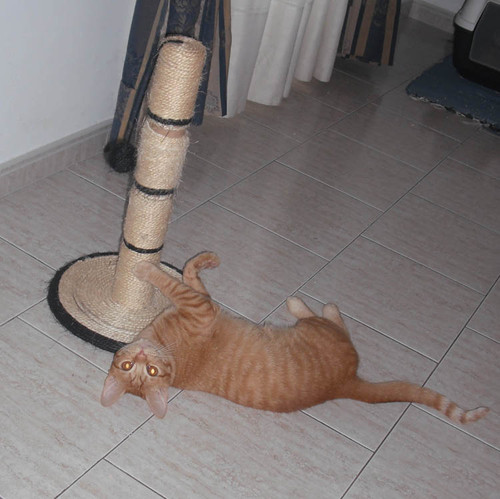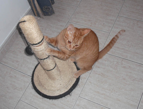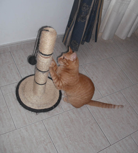 O Riscas continua a gostar e muito do seu arranhador. Todos os dias lá vai e várias vezes ao dia!