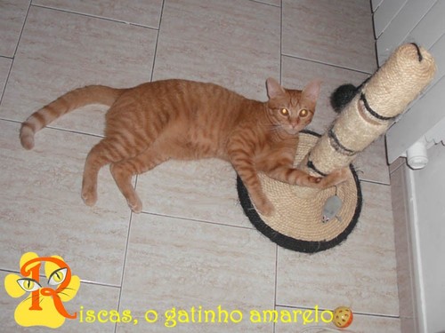 A avaliar pelo Riscas, há momentos em que ele parece mesmo sentir-se o dono da casa, mas é só por alguns momentos. Eu sei que ele gosta de nós, ele brinca connosco, ele mia quando está sozinho a pedir companhia...e quando chego a casa vem-me receber à porta todo contente.