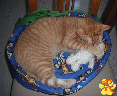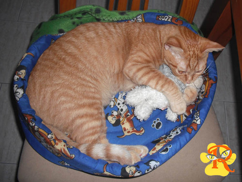 O Riscas por vezes parece uma criança a dormir, pois costuma dormir abraçado ao seu peluche. Tirei estas três fotos sequencialmente, na terceira o flash acordou-o. Fica tão fofo assim...