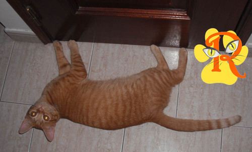 Ele sabe que é ali que está a comida, então ele mia, espera que eu vá atrás dele e depois fica à porta à espera que lhe dê comida. Mas tem mais olhos que barriga, porque tem comida no pratinho dele, gosta mesmo, é de ver a porta da dispensa a abrir!