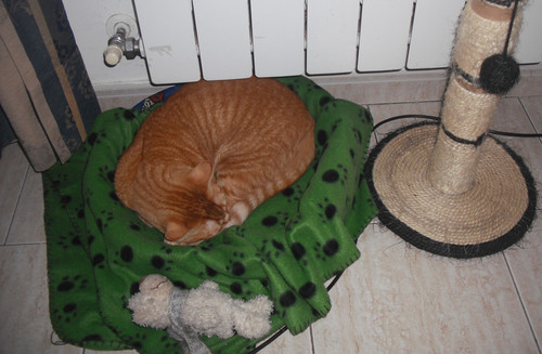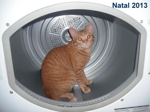 Esteve dentro do secador da roupa, pois estava lá quentinho...depois esteve na sala e por fim teve também a sua prendinha...