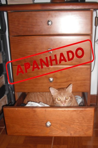 Gaveta da mesinha de cabeceira. Abriu-a e meteu-se lá dentro! Que maroto!