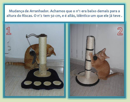 O Riscas não conseguia arranhar no arranhador nº1, dava a sensação que lhe fazia doer as costas, então resolvemos trocar. A verdade é que resultou!
