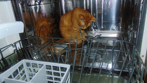 O que terá de intrigante o interior de uma máquina de lavar louça, para que o Riscas, ande sempre lá dentro a investigar!?