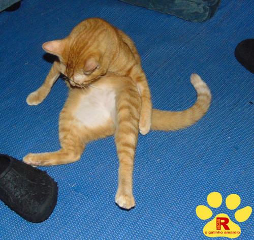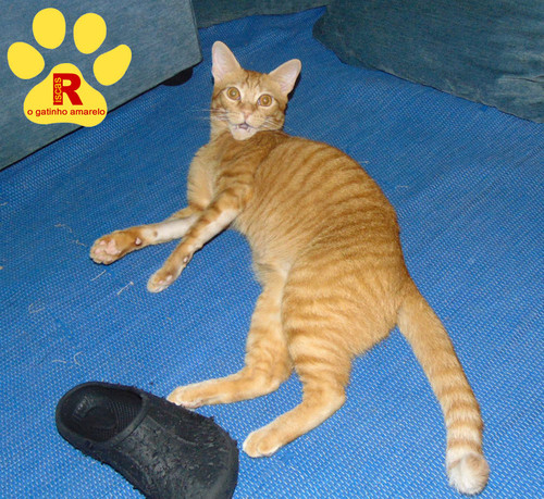 Com bigodes aprumados, sorri… De pelo no ar e um andar majestoso, senta-se na carpete do hall de entrada. O Pedro mostra-lhe a cozinha, a sala e, finalmente, o quarto. Junto do pequeno ouvido do gatinho amarelo sussurra-lhe: Riscas!? Jovem?! É aqui que nos juntamos. É aqui que seremos felizes.