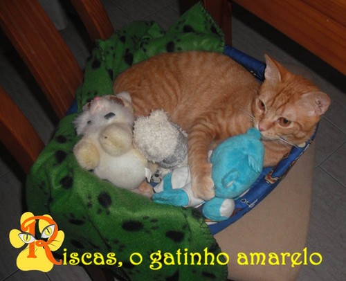 Íamos sair a uma hora que costumamos estar sempre em casa. Não era habitual o Riscar ficar sozinho ao serão, então, o P., muito preocupado, resolveu deixar o seu amiguinho de quatro patas bem acompanhado pelos peluches:)