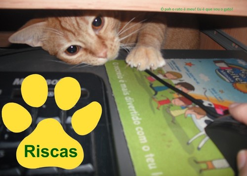O Riscas tem um rato de corda, mas não lhe liga nenhuma, no entanto, o rato do computador...ele gosta imenso dele...